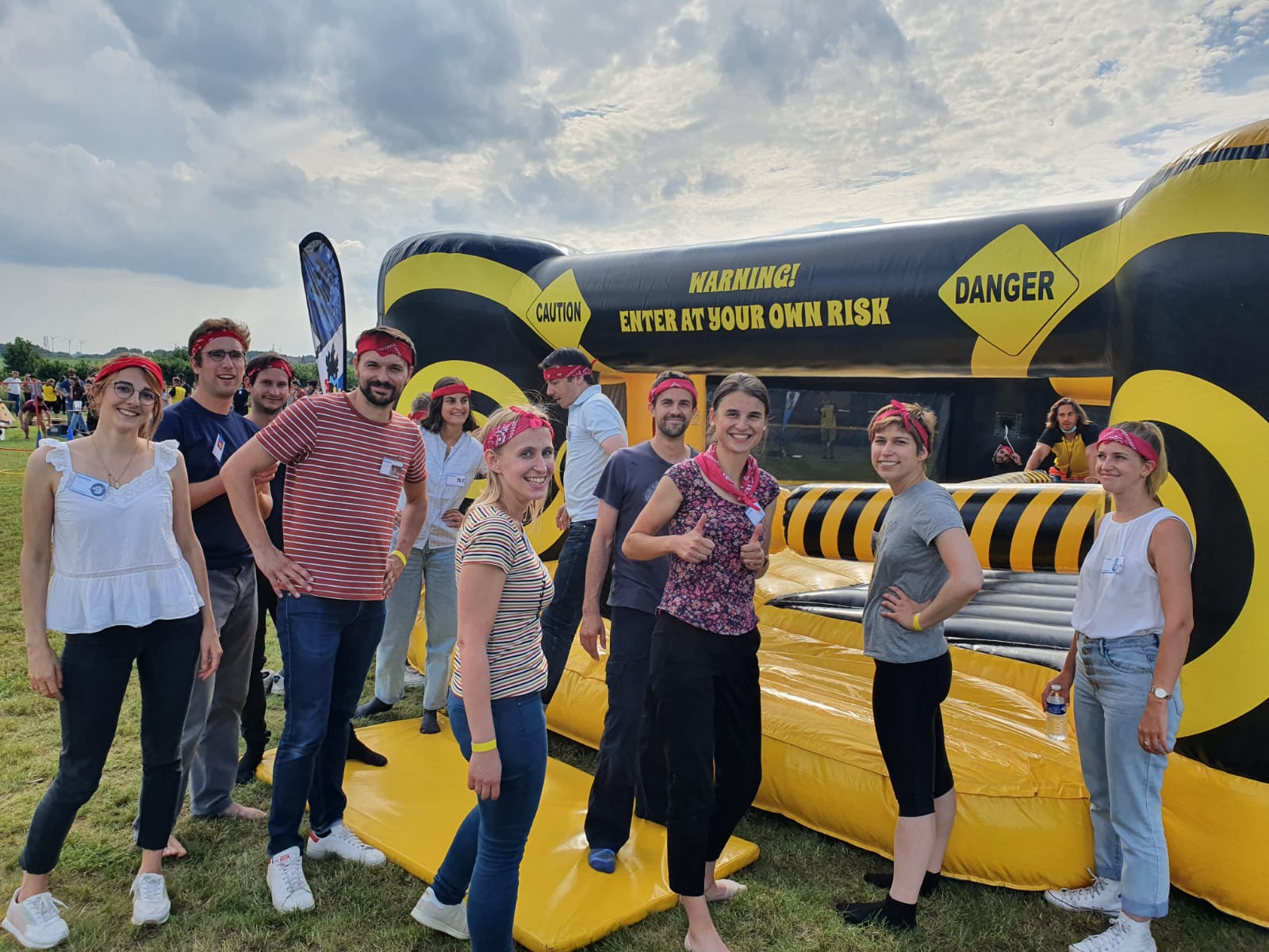 Le programme débute par une chasse aux foulards, où les équipes doivent retrouver douze foulards disséminés et résoudre des rébus pour progresser. Ensuite, plusieurs épreuves de cohésion sont proposées, telles que le curling rugby, le tangram géant à réaliser les yeux bandés, et la course de garçons de café. Ces activités requièrent une coordination étroite et une forte coopération entre les participants. L’animation se termine par une photo d’équipe sur le thème du sport, afin de capturer l’esprit d’équipe.